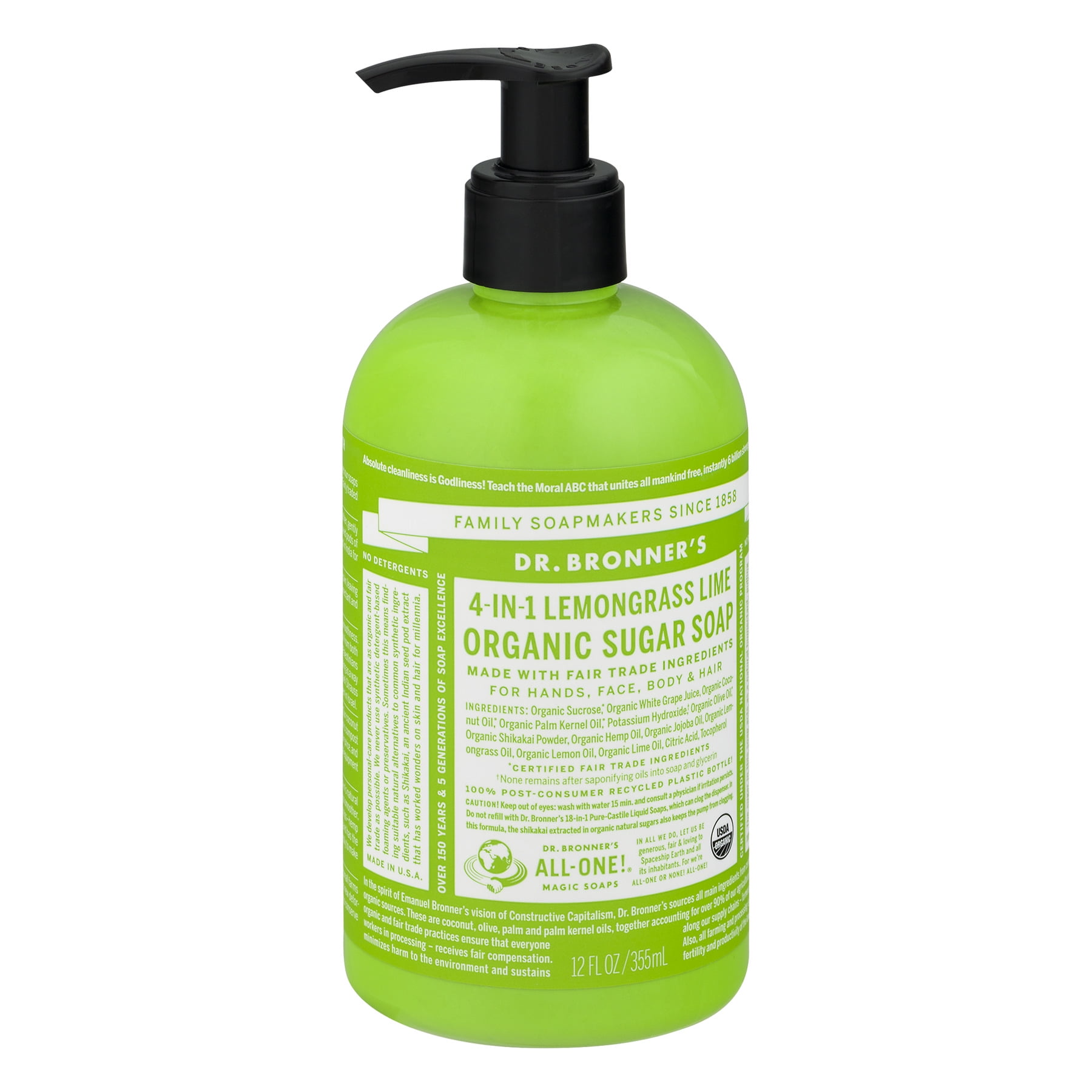 Dr Bronner S Organic Lemongrass Lime Sugar Pump Soap 12oz Walmart Com